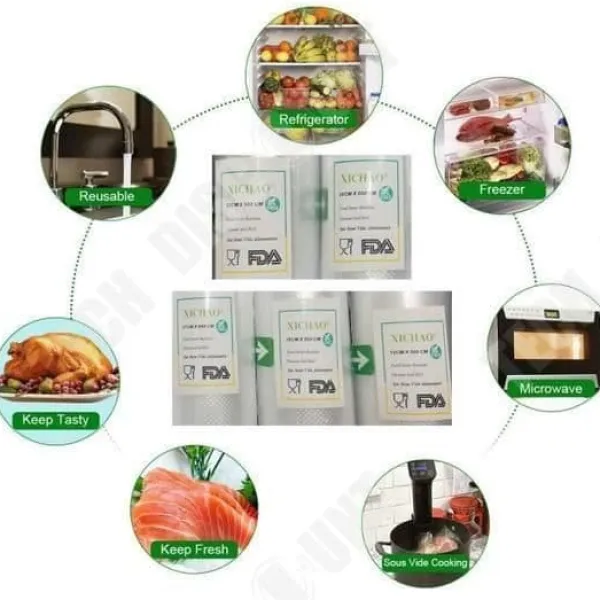 Bli först med att recensera ”Vakuumförpackare-Säck Sous Vide – TEKNIKRABATT – 5 Rullar – Icke giftig – Hög transparens – 500 cm” Avbryt svar