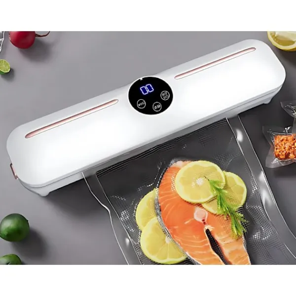 Vår vakuumförpackare är ett oumbärligt verktyg för alla matlagningsälskare, för att lagra och säkerställa långvarig färskhet av livsmedelsprodukter. Den gör det möjligt att snabbt och enkelt vakuumförpacka din mat, och bevara dess smak, arom och näringsvärde under längre tid.