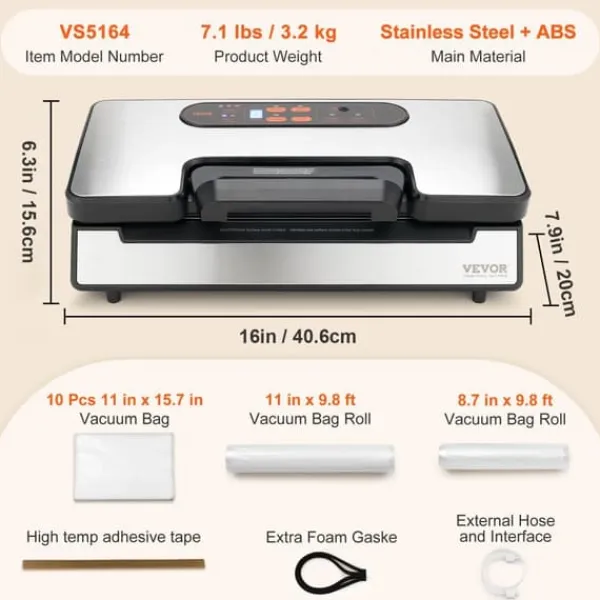 - mångsidig användning: vakuumförsegla både torra och fuktiga livsmedel, plus marinera med extern slang och gränssnitt.