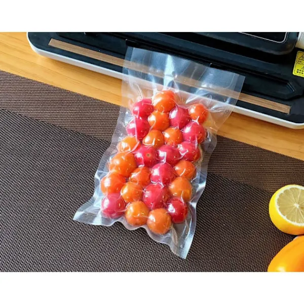 Tillverkade av starkt, flerlagers PA/PE-material, är påsarna riv- och punkteringsbeständiga. Deras mikro-räfflade struktur säkerställer utmärkt luftutvinning och perfekt försegling. De kan användas i både kylskåp och frysar.