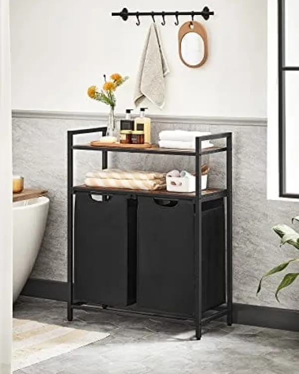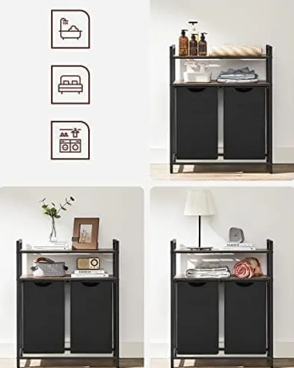 En mångsidig vardaglig hjälpare: Denna tvättkorg med 2 containrar och 2 hyllor passar bra i tvättstugan, badrummet eller sovrummet och hjälper dig att hålla kaoset dolda och ofta använda föremål lättillgängliga