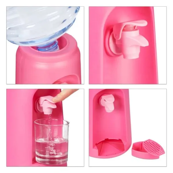 Denna vattenautomat erbjuder ett bekvämt sätt att få tillgång till färskt dricksvatten vid ditt skrivbord, hemma, i skolan eller i väntrummet utan behov av elektricitet. Fyll bara den avtagbara behållaren, placera den på stället och använd kranen för att hälla upp vatten i glas. Dess flexibla placering och praktiska design gör den idealisk för att hålla sig hydrerad hela dagen.