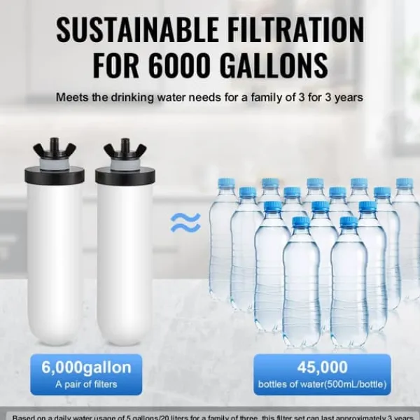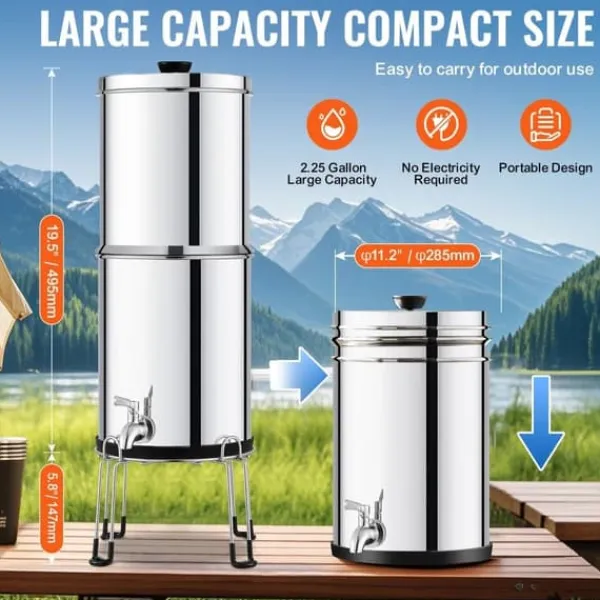 - Bärbar stor kapacitet: Med en kapacitet på 2,25 gallon möter detta vattenfilter för bänkskivan behoven hos 1-4 personer. Dess kompakta design minskar volymen med hälften för enkel förvaring och portabilitet.