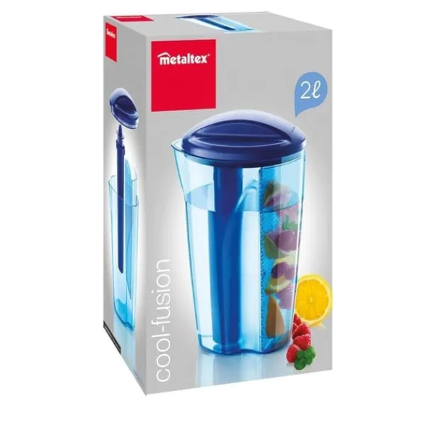 Metaltex Cool Infusionskanna med infusionskärl och filter Fyll behållaren med vatten och placera den i frysen. Detta kan sedan tillsättas i kannan för att kyla din dryck. Du kan smaksätta din dryck genom att tillsätta frukt i filtret. Lätt att rengöra i diskmaskin. Mått: 10,5x16x28cm och en kapacitet på 2 liter.