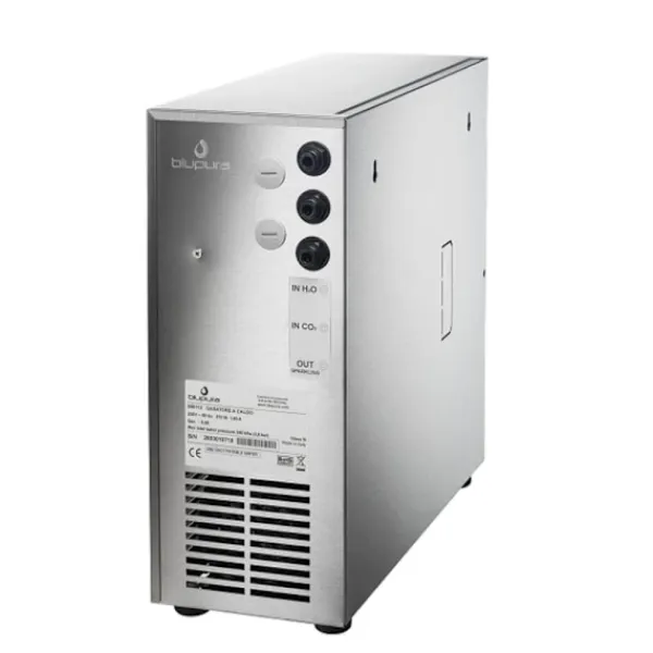 Kolsyremaskin, bubbelvatten maskin, varmvattendispenser, carbonator – Blupura Här är den ultimata kolsyremaskinen från Blupura – perfekt för hemmet eller för små företag som caféer, restauranger och barer. Den kan producera upp till 200 liter per timme vid ett tryck på ca 12 bar och har en robust kolsyratank av högkvalitativt rostfritt stål. Den har även en mässingspump och en elektronisk pumpstyrning som stänger av pumpen automatiskt vid brist på vatten, vilket gör den både säker och hållbar. Produktfunktioner: •Linningsanslutning för vatten- och gasinlopp: 8 mm AD (5/16” ) •Linjeanslutning för kolvvattenutlopp: 8 mm AD (5/16) max. •Mått B/D/H: 170/440/420 mm •Vikt: 10,3 kg •Dragkraft: 220 L/h, 230 V, 50 Hz, 180 W, 1,65 A. Med den här kolsyraren för dricksvatten kan du producera uppfriskande, högkvalitativt bubbelvatten när som helst och spara pengar, samtidigt som du skyddar miljön. Med den praktiska Blupura varmkolsyra är det superenkelt och snabbt att göra. Varför inte prova redan idag?