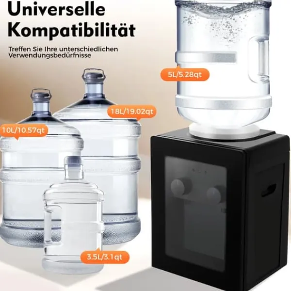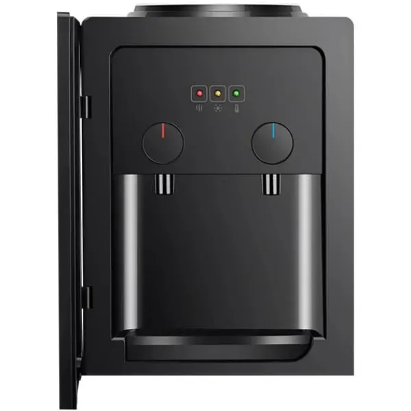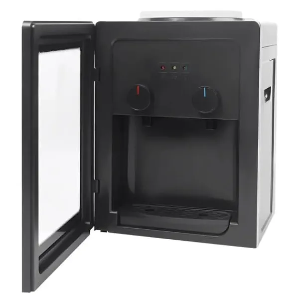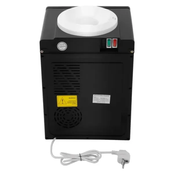 Kompakt varm- & kallvattenautomat i svart Denna stilrena vattenautomat i svart levererar snabb uppvärmning med 550 W och effektiv kylning med 75 W vid 220 V, 50 Hz. Med slitstarkt PP-hölje och innerbehållare i rostfritt stål är den perfekt för hem, kontor och bardiskar.