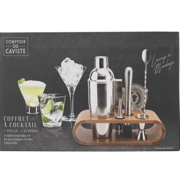 MIXOLOGY bartenderset är ett snyggt och komplett set för att tillaga drinkar hemma. Setet innehåller sju professionella tillbehör i rostfritt stål: en shaker, muddler, måttkopp, sil, barsked, hällare, tång och ett bambuställ som håller allt organiserat och elegant visar hela setet. Detta moderna och funktionella set är perfekt för hemmafester, middagar med vänner eller som present till en cocktailälskare. Dess estetik gör den till ett perfekt komplement till alla kök, vardagsrum eller barer. Oavsett om du förbereder en klassisk mojito, margarita eller din egen signaturcocktail låter MIXOLOGY-setet dig känna dig som en riktig bartender i ditt eget hem.