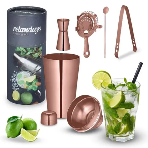Perfekt bartenderset för din nästa cocktailparty. Överraska dina vänner med läckra, hemlagade cocktails på din nästa fest. Detta 5-delade cocktailshakerset gör en margarita, piña colada eller Long Island-iste till en barnlek – det perfekta tillbehöret till din bar. Använd mätkoppen för att mäta ingredienserna och tillsätt dem i shakern med is, skaka väl och sila över i ett glas. Garnera med en frukt – cocktailen är redo att avnjutas. Skötselråd: För att säkerställa långvarig njutning av denna produkt rekommenderas handdiskning.