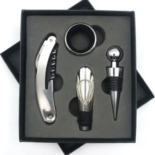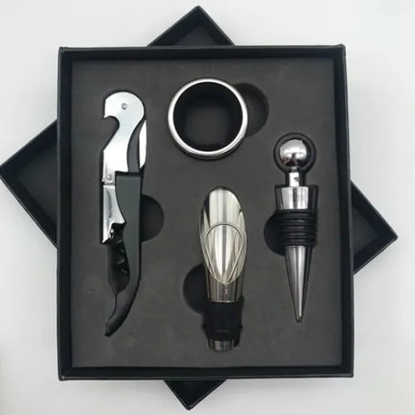 Välkommen till vår butik! Korkskruvsetet för vinflasköppnare är tillverkat av rostfritt stål, vilket säkerställer att det är rostfritt, slitstarkt och hållbart. Den är perfekt för att enkelt öppna vinflaskor. Setet kommer i en vacker presentförpackning, vilket gör det till ett utmärkt val för att ge presenter. Den är lämplig för olika tillfällen som hem, bar och restaurang. Vinöppnarsetet är litet och lätt, vilket gör det lätt att använda utan extra börda. Det är en perfekt present till vinälskande vänner och familj.
