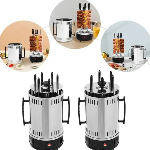 5-spetts-rotisserieFem medföljande spett roterar för jämn värmefördelning. Utmärkt för kycklingbitar, kebab och vegetariska spett.