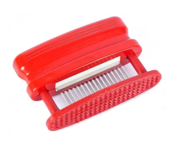 Ett stort antal blad, som glider ut ur den traditionella klubbfoten när de trycks eller slås lätt, gör att köttfibrerna förblir skurna och inte krossade. Detta förhindrar förlust av naturliga safter i köttet och ökar smaken på de tillagade rätterna.