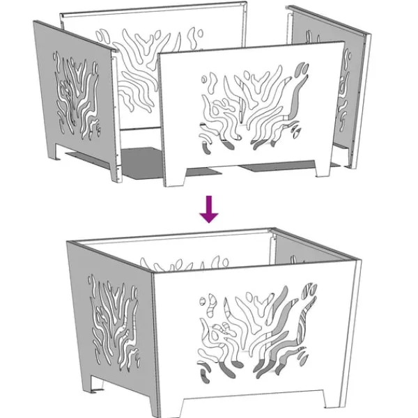 Den här moderna fyrkantiga utomhuseldstaden ger en riktigt välkomnande känsla för dina sammankomster på balkongen eller uteplatsen. Tack vare det starka, värmebeständiga stålet kombinerar den funktionalitet med en cool design, vilket gör den till ett självklart val för utomhusmys.