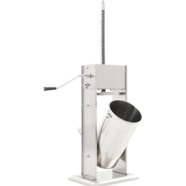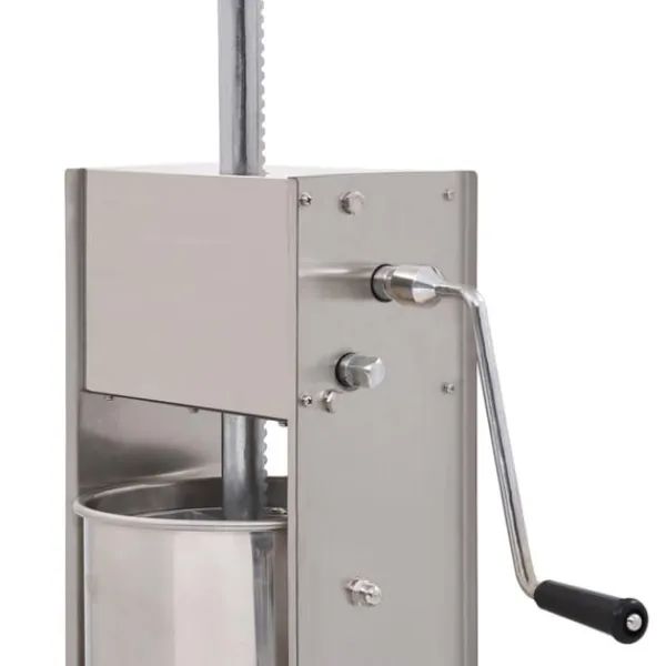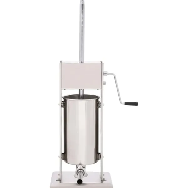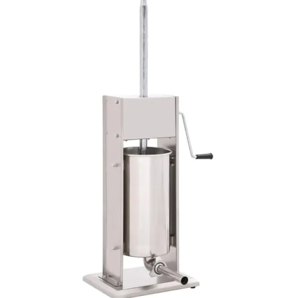 Korvfyllaren i rostfritt stål är utrustad med en 15-liters tratt som går att luta och är avtagbar för att enkelt fylla ditt korvkött, den är också enkel att rengöra. Kolven aktiveras med en vev, som pressar korvmassan genom påfyllningsröret. Dessutom ingår 3 fyllningsrör i olika storlekar för att möta dina olika behov.