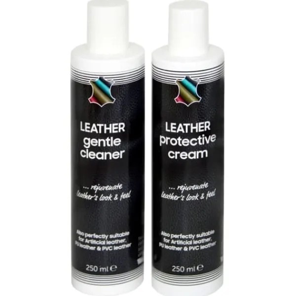 Uppsättningen innehåller säkra produkter för att rengöra, stärka och skydda läder mot fukt, hudfett, svett, smuts och UV-strålning. Regelbundet underhåll håller läder mjukt och förlänger dess livslängd. Dessutom är den även lämplig för konstläder/PU-läder och PVC-läder.