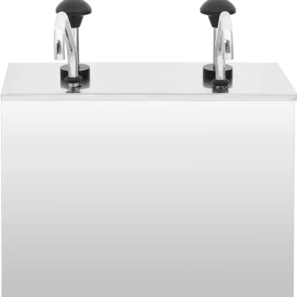 Denna behållare med pump är tillverkad av högkvalitativt rostfritt stål. Alla delar som kommer i kontakt med livsmedel är tillverkade av 304 rostfritt stål, vilket gör att behållaren inte rostar snabbt. Den är lätt att rengöra. Dessutom, då den har en stor kapacitet, kan denna behållare lagra en tillräcklig mängd olika såser som majonnäs, ketchup, sojasås, etc. Den kan förvara stora mängder såser med sin 2 x 3,5 L kapacitet.