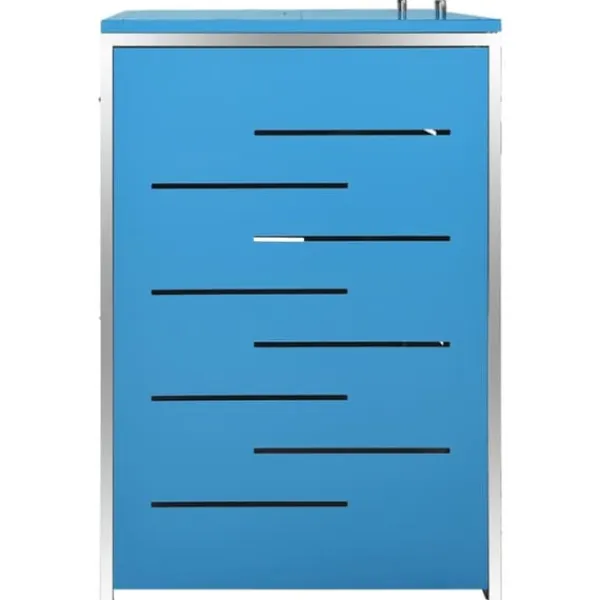 Sopskjulet är tillverkat av galvaniserade stålpaneler och en ram av rostfritt stål, vilket gör det mycket robust och rostbeständigt. Den ihåliga designen släpper in luft och förhindrar otrevliga lukter, medan låset säkerställer säker förvaring av soporna. Dessutom gör det praktiska locket och fjädrarna det enkelt att ta ut och sätta in sopkärlet.