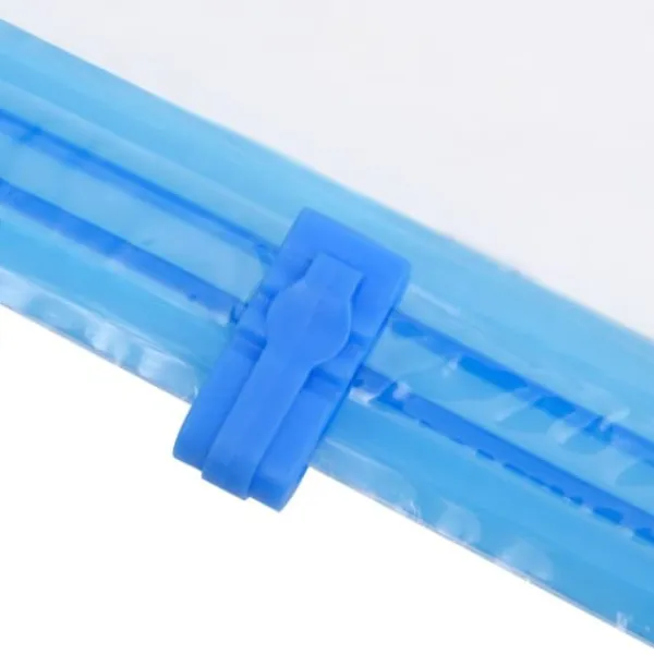 Påsen, tillverkad i plast, är vattentät och mögelfri. Den är enkel att använda, bara öppna påsen, förvara föremål, stäng påsen och dammsug. Skjutreglaget gör att du snabbt och enkelt kan stänga och öppna påsen. Denna komprimerade påse är också lätt att rengöra och kan återanvändas. Vänligen observera: Pump ingår ej.