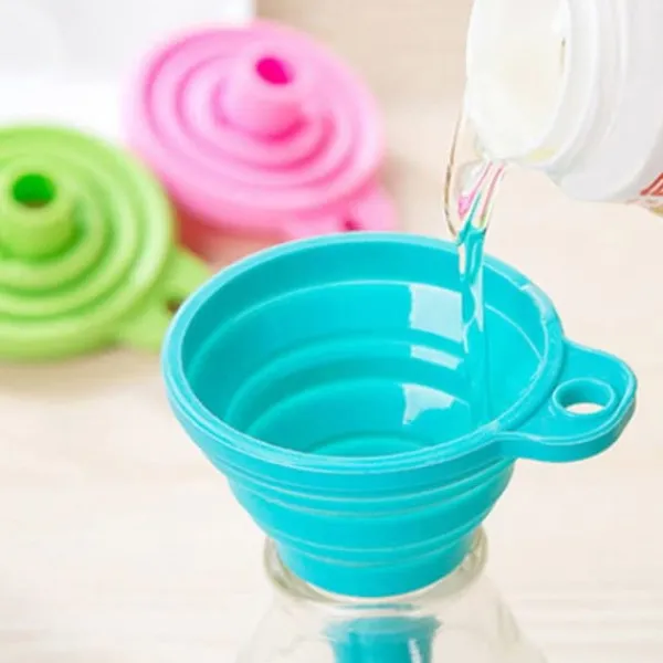 Med sin hopfällbara design kan denna tratt enkelt expanderas för att användas och fällas ihop för att lagra, vilket sparar värdefullt utrymme i ditt kök. Det är en liten och bekväm kökspryl och verktyg som kan användas av alla i familjen.