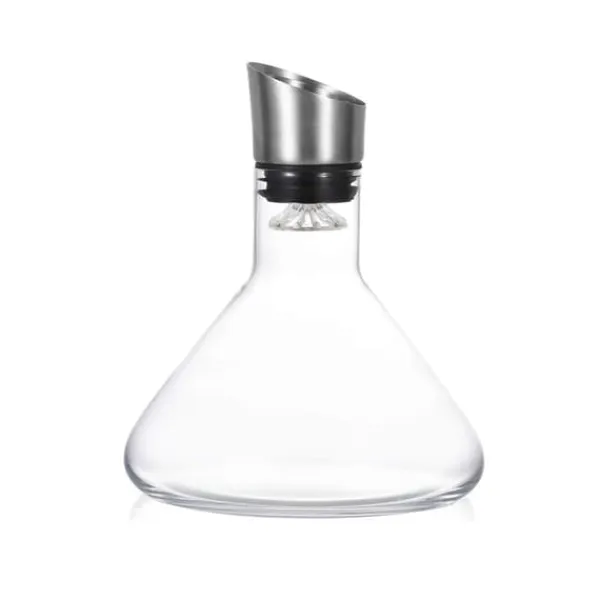 Denna dekanter skiljer sig från traditionella modeller med sin inbyggda dubbelfilter aerator som hjälper till att filtrera bort orenheter och lufta vinet snabbt. På bara 3-5 minuter kan vinet andas och frigöra intensiva aromer och smaker. Den sluttande toppen förhindrar spill och droppar, och den smala halsen gör den lätt att greppa och hälla. Den är också lätt att rengöra.