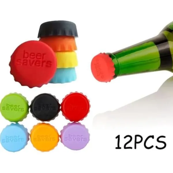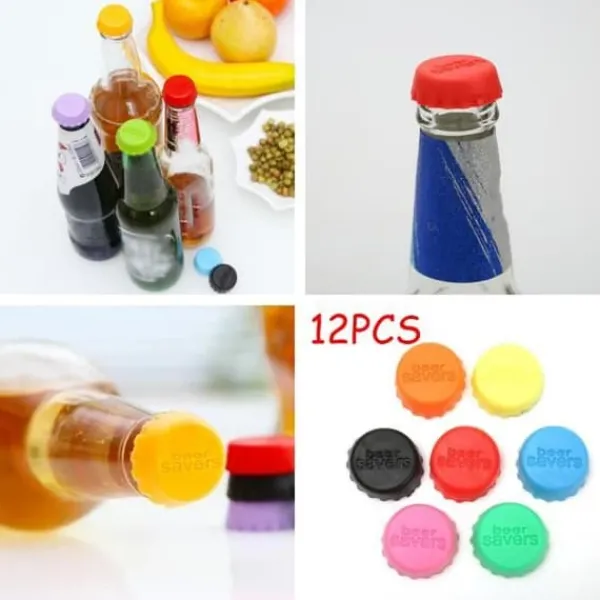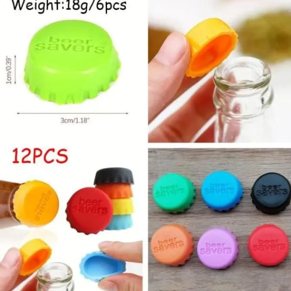Egenskaper: Material: Livsmedelsgodkänd silikon Färg: Gul, Orange, Svart, Röd, Blå, Rosa, Grön Produktens dimensioner: 3x3x1cm Nettovikt: 18g/6st Innehåll i förpackningen: 12x Flasklock