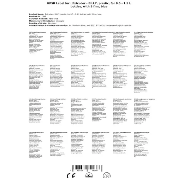 BILLY – plasthäll för 0,5 – 1,5 l. Flaskor – blå – med 5 lameller – plasthäll för 0,5 – 1,5 l. Flaskor – blå – med 5 lameller