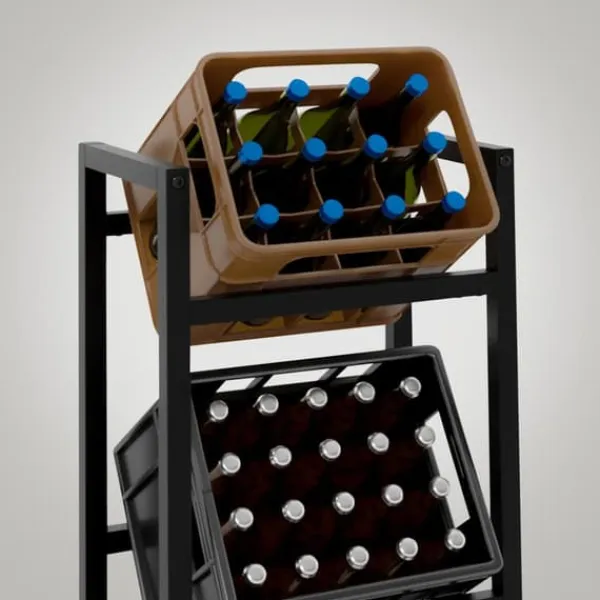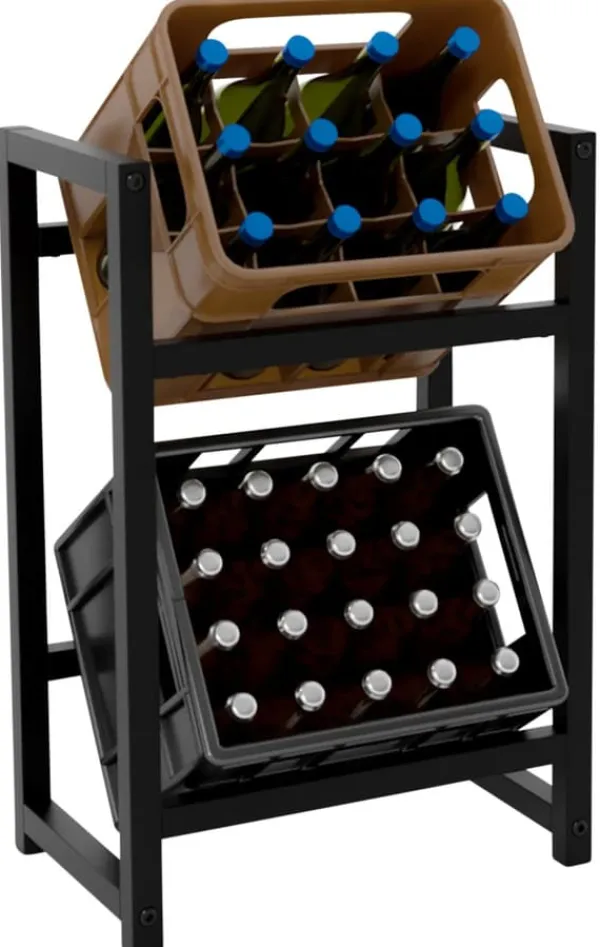 Dricks Crate Holder Stapel – Praktiska och snygga drycker!. Denna högkvalitativa dricksslåda är inte bara praktisk och funktionell utan också visuellt attraktiv. Det finns i matt borstat rostfritt stål eller metall, valfritt i kromoptik, svartmatt eller vit. Du kan lagra dina lådor ideal och dryckerna kan tas ut snabbt eftersom stavarna placeras diagonalt. Eftersom designen kan ses kan hållaren också integreras i vardagsrummet och inte bara behöva lysa i källaren. Dessutom kan du välja mellan fyra olika storlekar, oavsett om du bara vill lagra två lådor eller upp till sex. Dimensioner (B x h x d):. För 2 lådor: 47 x 75 x 31 cm (6 kg). För 3 lådor: 47 x 116 x 31 cm (8 kg). För 4 lådor: 91 x 75 x 31 cm (13 kg). För 6 lådor: 91 x 116 x 31 cm (20 kg). Max. Lådbredd: 42 cm. Max. Krathoight: 35 cm