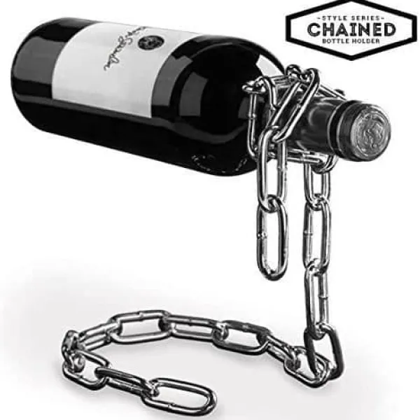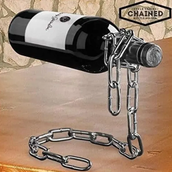 Den här svarta metallflaskhållaren skapar en fascinerande optisk illusion genom att hänga en vinflaska. Perfekt för att imponera på dina gäster, fungerar den även med en tom flaska. En originalaccessoar som kombinerar design och magi, idealisk för vinentusiaster.