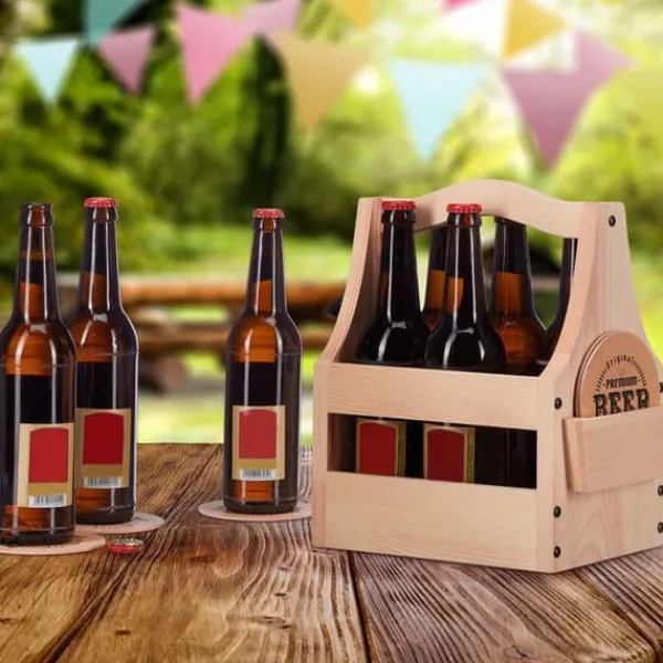 Till skillnad från pappersbärarna som inte alltid garanterar säkerheten för drycker, låter denna trähållare dig transportera dina drycker på ett coolt och säkert sätt. Detta kassettsystem gör det dessutom möjligt att transportera upp till 6 flaskor på 0,5 liter. Med flasköppnaren på sidan finns inget som står i vägen för omedelbar konsumtion av en kall blonde öl. Fylld med olika sorters öl är flaskhållaren en utmärkt presentidé för fars dag eller en födelsedag.