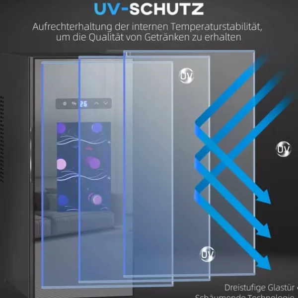 - ✔ Den tre-lagers glasdörren med isolerande skum håller temperaturen konstant och är UV-beständig
