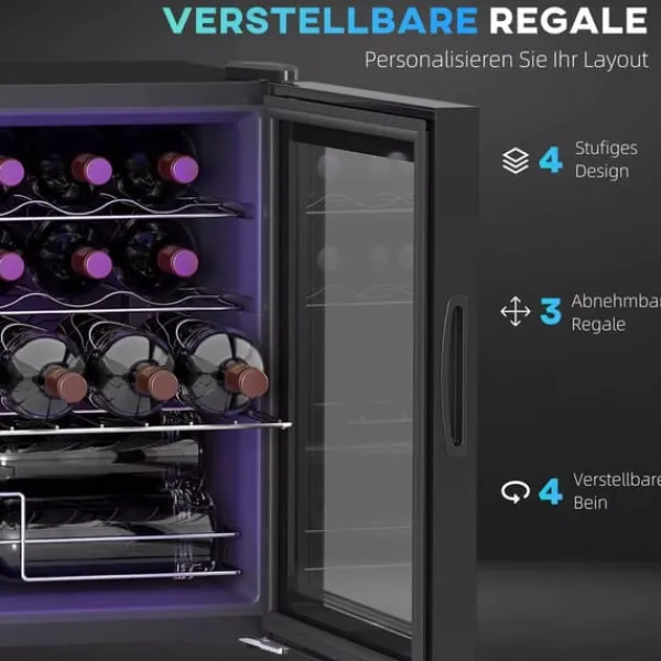 - ✔ Justerbara fötter på vinkylskåpet stabiliserar enheten på ojämna ytor