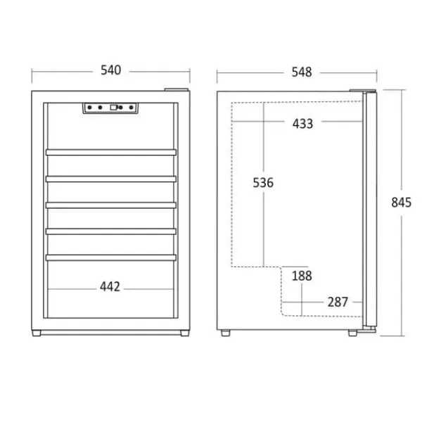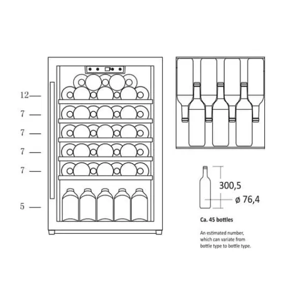 Scandomestic SV 45 B – Vinkylskåp – 1 Zon – bredd: 55 cm – djup: 55,5 cm – höjd: 83,5 cm – 115 liter – svart – Upp till 45 flaskor