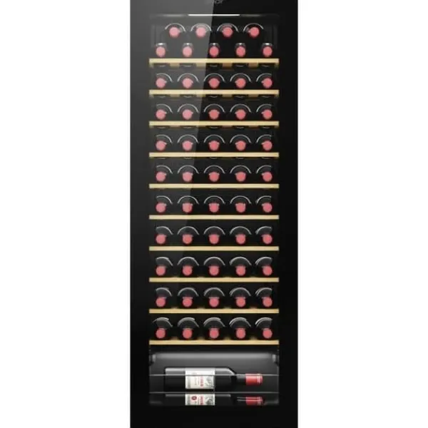 Upptäck Candy CWC 058 vinkyl, den idealiska följeslagaren för kräsna vinälskare. Med en generös kapacitet på 58 flaskor och 10 hyllor av bambu erbjuder den en optimal lagringsmiljö som kombinerar robusthet och elegans. Den UV-behandlade, trippla glasdörren skyddar dina värdefulla flaskor från skadliga strålar samtidigt som du kan beundra din samling. Tack vare Wi-Fi-anslutningen och appen hOn kan du hantera din vinkällare på distans, skapa ditt lager och inspireras av personliga förslag. Den LED-belysning som inte avger värme säkerställer perfekt synlighet utan att kompromissa med kvaliteten på dina viner. Med ett intuitivt elektroniskt gränssnitt, en omställbar dörr för flexibel installation och tyst drift på endast 37 dB, kombinerar denna vinkyl prestanda och komfort. Dess raffinerade svarta design passar perfekt in i alla inredningar. Ge dina viner de bästa lagringsförhållandena, mellan 5°C och 20°C, tack vare dess statiska kylsystem och klimaklass ST. En produkt tänkt för entusiaster, signerat Candy.