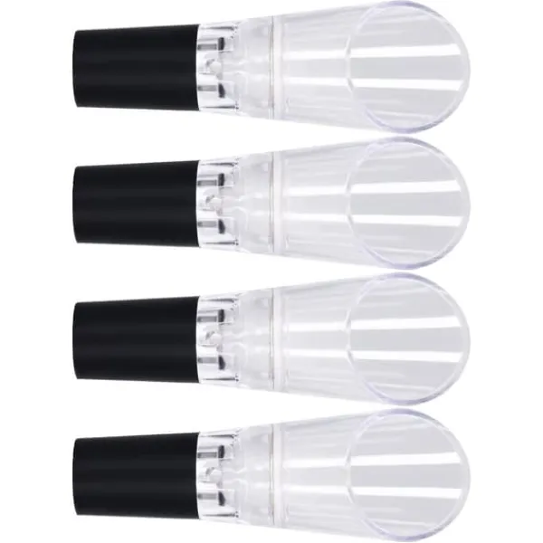 5、[Brett tillämpning] Används i stor utsträckning vid fester, barer, familjemiddagar, resor, camping, bröllop och det dagliga livet. Kan även användas som födelsedagspresenter, nyårspresenter, julklappar etc. Artikeltyp: Material för vinluftare: PC Vikt: Ca. 80 g / 2,8 oz övre kaliber Storlek: Ca. 4,3 x 3,1 cm / 1,7 x 1,2 in 4 x vinluftare hällare 100 % nöjd : Våra kunder är vår högsta prioritet. Om du upptäcker några produktproblem efter att ha mottagit varan, såsom skador och felaktig mängd varor, vänligen kontakta säljaren omedelbart. Vi gör vårt bästa för att ge dig tillfredsställande service efter försäljning.