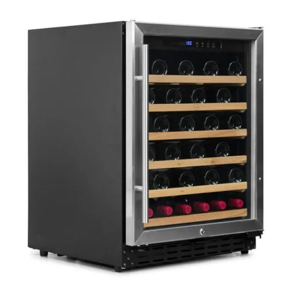 Vinkällare 50 1T InoxDigital temperaturkontrolldisplay med indikatorlampa – Konstant luftfuktighet ≥ 60% – Innerbelysning – Höjdjusterbara fötter – Nofrost-system – Kylning med kompressor monterad på antivibrationsgummi