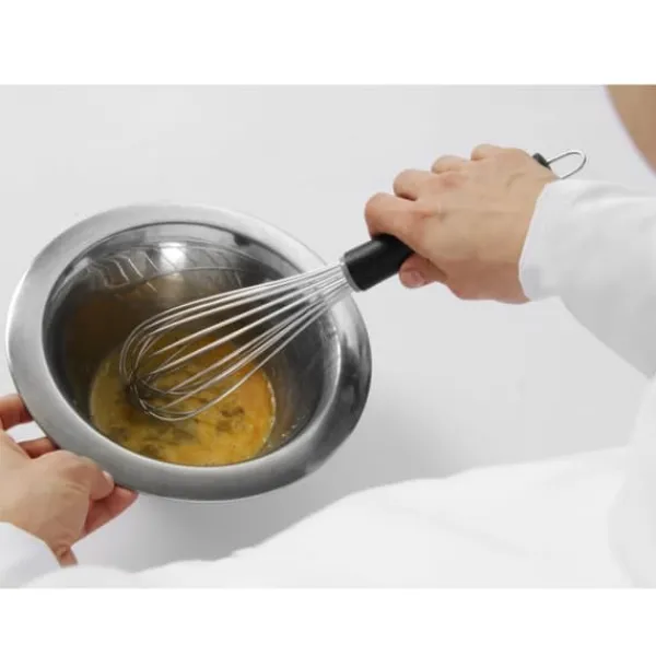 HENDI-vispen har 8 spindlar, gjorda av rostfritt stål, perfekt för att förtjocka såser, mala deg eller vispa skum. Handtaget i polypropen har en hängare som gör att du kan hänga upp tillbehöret på ett lättillgängligt ställe så att du alltid har det till hands. Beständig mot höga temperaturer, så den kan diskas säkert i diskmaskin. Produkten är godkänd för kontakt med livsmedel. Perfekt för HoReCa-industrin såväl som hemmaförhållanden.
