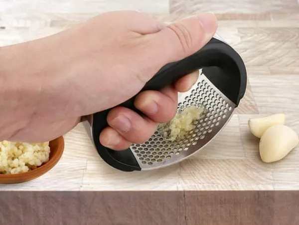 Vitlökspressen är den perfekta apparaten för ditt kök. Tillverkad av rostfritt stål, krossar och hackar den vitlök perfekt. Dessutom har den ett bekvämt handtag. Den kan också användas för att krossa andra små grönsaker och kryddor, och den krossade fruktköttet kan mycket enkelt samlas upp och läggas i rätter. Lätt att rengöra, bara
