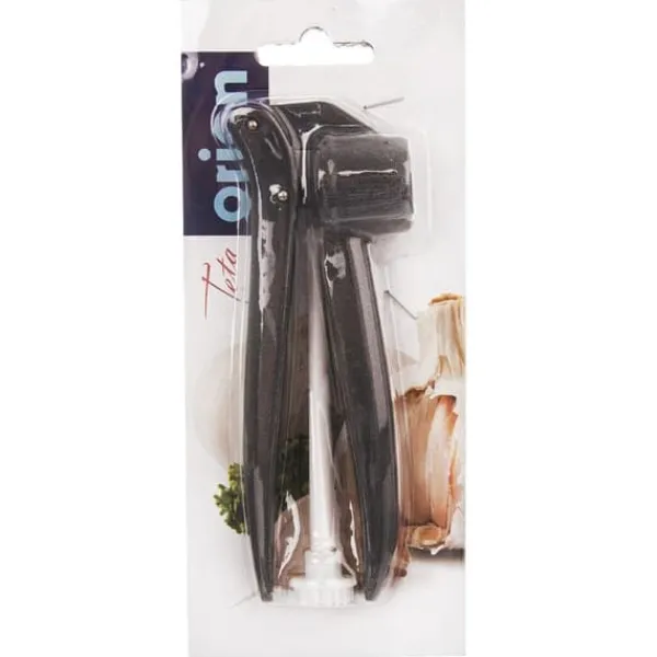 Vitlökspress i aluminium med praktisk rengöring. Tillverkad av material av högsta kvalitet. Denna press ersätter det mödosamma rivandet eller hackandet av färsk vitlök med en kniv. Lätt att använda och rymmer en hel vitlöksklyfta. Designen säkerställer exakt vitlökspressning och gör det också enklare att rengöra pressen från eventuell kvarvarande vitlök. Användbar i alla kök. Tillverkad av hälso- och livsmedelssäkra material. Originalprodukt från det tjeckiska märket Orion. Tillverkad i enlighet med europeiska standarder.