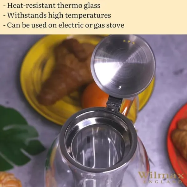 Brygg löste direkt på spisen med Wilmax tekanna 600 ml i värmetåligt borosilikatglas. Den transparenta kannan låter dig följa bryggningen, medan rostfritt stålfilter håller kvar tebladen för en klar, aromatisk kopp. Passar gas- och elspis och är diskmaskinssäker (ta av locket/insatsen vid behov). Glaset är lukt- och smakneutralt, motstår repor och är lätt att hålla rent. Den droppsnåla pipen och det bekväma handtaget gör serveringen smidig. En elegant tebryggare som fungerar lika bra till blommande te och örtte som till svart eller grönt te—perfekt för vardag, gäster och som present.