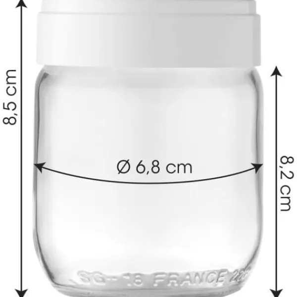 Denna uppsättning med 9 LAGRANGE-yoghurtkrukor är idealiska för att förbereda din hemmagjorda yoghurt. Tillverkade av glas och plast är de stapelbara och kompatibla med LAGRANGE yoghurttillverkare (referenser 439 och 459). Varje kruka har en kapacitet på 185 g och finns i transparenta och vita färger.